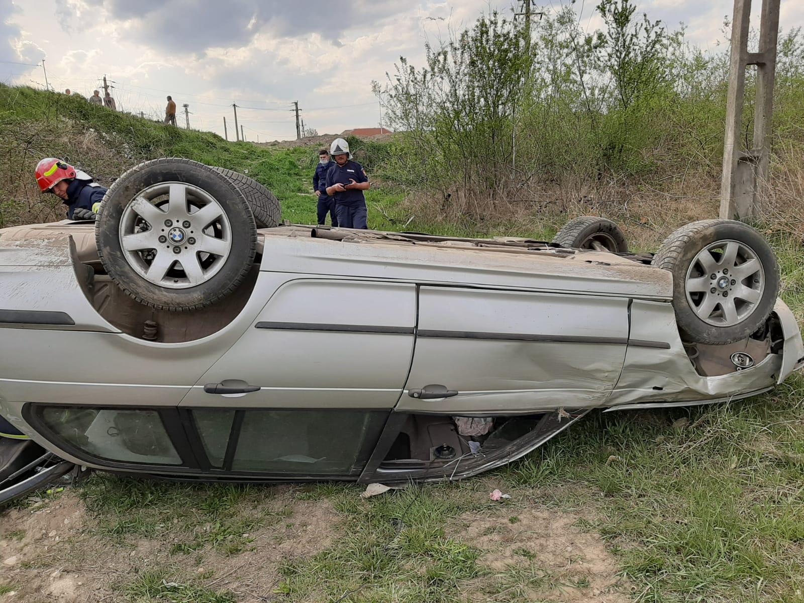 Cel puțin o persoană a fost rănită, într-un accident rutier produs în urmă cu puțin timp, pe raza comunei Albeni. Mașina în care se afla s-a răsturnat pe plafon. Bărbatul rănit grav are 38 de ani.