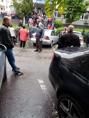 Peste 100 de pacienți au fost puși în așteptare la ușa Policlinicii, fără distanțare socială, prin zonă netrecând picior de polițist.