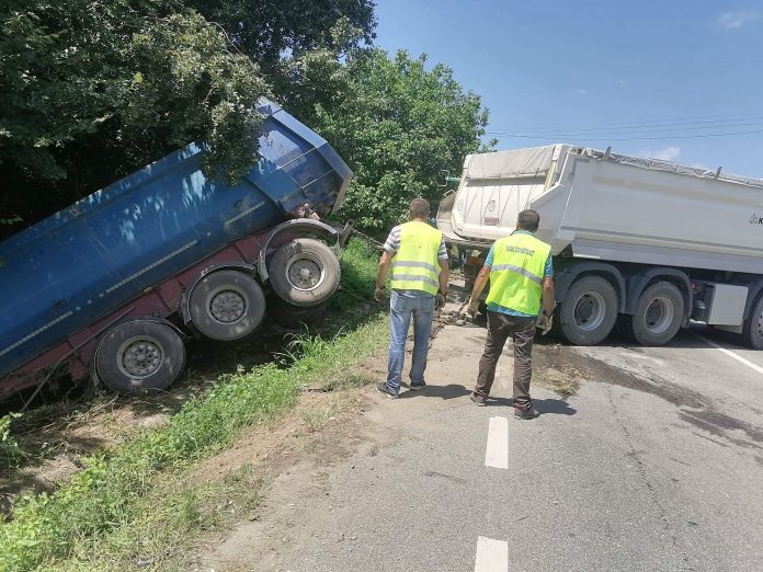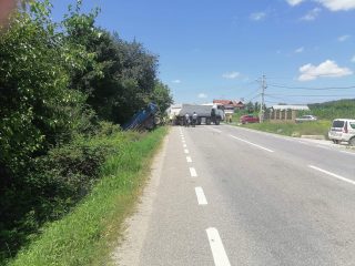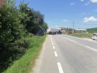 La această oră, traficul în zona localității Bîlteni, satul Vlăduleni, se desfășoară cu dificultate. Echipe de intervenție depun eforturi pentru scoaterea din șant a autoutilitarei cu semiremorcă răsturnată ieri în urma impactului cu un autoturism. În urma accidentului produs ieri la Vlăduleni a rezultate rănirea a doi bărbați și a unui minor în vârstă de 4 ani.