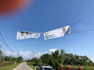O mare parte dintre bannere candidatului Pro România la funcția de primar, Vasile Moșoiu, au fost tăiate în cursul acestei nopți. Asta în condițiile în care primarul comunei Drăguțești, Ion Popescu, contracandidatul lui Moșoiu, s-a lăudat, recent, cu sistemul de supraveghere video al comunei.