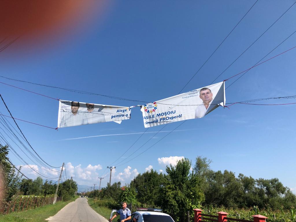 Reamintim că Moșoiu a cerut Primăriei să îi aprobe amplasarea a 12 bannere pe raza localității iar cerea s-a a fost respinsă de edilul PSD care i-a transmis în scris că poate pune doar 4 bannere și asta nu pe drumurile comunale.