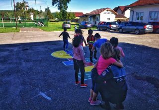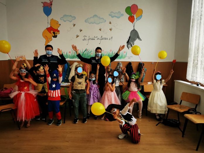 „Întrucât joaca este esențială pentru creșterea și dezvoltarea copiilor, iar implicarea polițiștilor în aceste activități ale copiilor duce la crearea de legături și consolidarea încrederii între participanți, polițiștii au desenat în curtea unității de învățământ două șotroane colorate, reușind să-i bucure pe elevii care nu au ezitat să-i roage și pe polițiști să li se alăture în joc. În dimineața zilei de 24.05.2021, elevii au fost așteptați în clasă de către polițiștii de prevenire, astfel că le-au putut vedea bucuria și entuziasmul de pe fețe, în momentul când au observat pictura de pe perete, care îl contura pe ”Winnie the Pooh” și prietenii acestuia din desene animate, personaje foarte cunoscute de către copii.