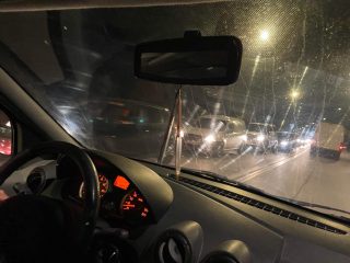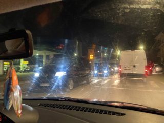 Foto: Coada la benzinaria Socar se întinde pe câțiva kilometri, până la Bebe Luțaru