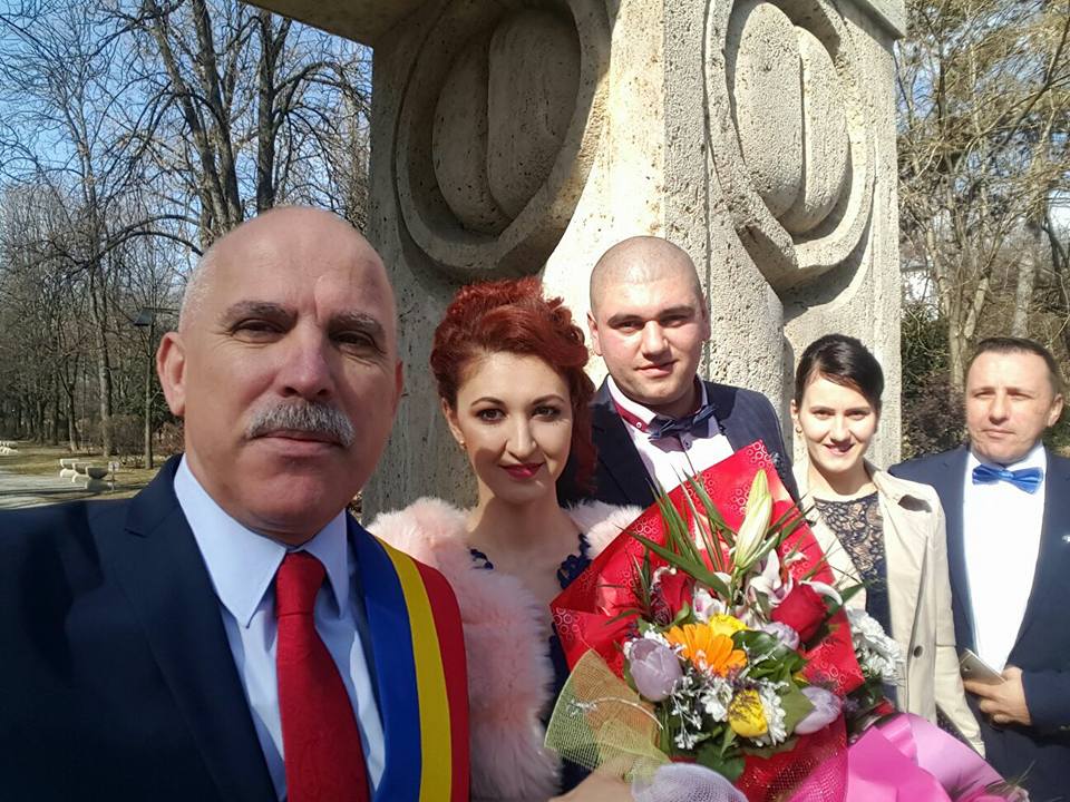 „Casă de piatră tinerilor Irina si Mugurel Frîncu din Câmpina ! Ei au ales să se căsătorească la Poarta Sărutului într-o zi specială, de Dragobete”, a scris primarul interimar, Aurel Popescu, pe pagina sa de Facebook.