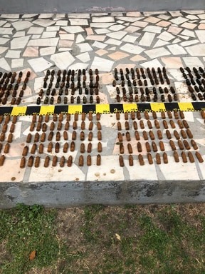 Sute de obiecte de muniţie antiaeriană au fost ridicate, ieri, de echipa pirotehnica a Inspectoratului pentru Situatii de Urgență Gorj, de pe malul râului Gilort, în comuna Jupânești. Acestea au fost găsite de angajații primăriei, care efectuau lucrări de igienizare în zona respectivă. ”Am fost anuntați de către primarul comunei Jupânești că, în timpul unor lucrări executate pe raza localității, au fost găsite mai multe obiecte de muniție. La fața locului s-a deplasat o echipă pirotehnică din cadrul ISU GORJ, care a identificat un număr de 840 bucăți muniție antiaeriană, calibru 22 mm și două tuburi cartuș, calibru 7,62. Acestea au fost ridicate și depozitate de către echipa pirotehnică a ISU Gorj, urmând sa fie distruse controlat”, a declarat Maria Băran, purtătorul de cuvânt al ISU Gorj.