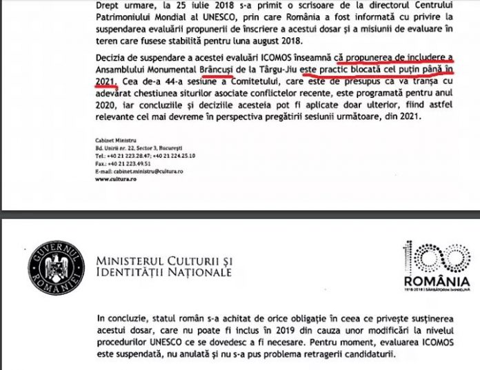 „Dosarul de includere a operelor lui Constantin Brâncuşi în patrimoniul UNESCO este blocat până în 2021! Îmi pare rău să dau eu această veste proastă! Informația apare în răspunsul Ministerului Culturii la o interpelare pe care am făcut-o pe acest subiect. Marți, 8 ianuarie, voi merge la ministrul culturii pentru a afla ce se întâmplă cu acest dosar pentru care PSD dădea asigurări că va fi un succes. În timp ce Brâncuşi este printre cei mai bine vanduți sculptori din lume şi inspiră milioane de oameni, statul român îşi arată nepriceperea. Merg la Minister pentru că vreau să ştiu şi ce se întâmplă cu proiectul Muzeului Brâncuşi cu urma să fie în Casa Gănescu, proiect amânat de ani de zile. De asemenea, voi argumenta importanța alocării de fonduri pentru modernizarea Căii Eroilor. Voi face şi un amendament la bugetul țării deoarece cred că dezvoltarea Târgu Jiului trebuie să se facă în jurul Axei Brâncuşi”, a anunțat, în această dimineață, Dan Vîlceanu, deputatul PNL de Gorj.