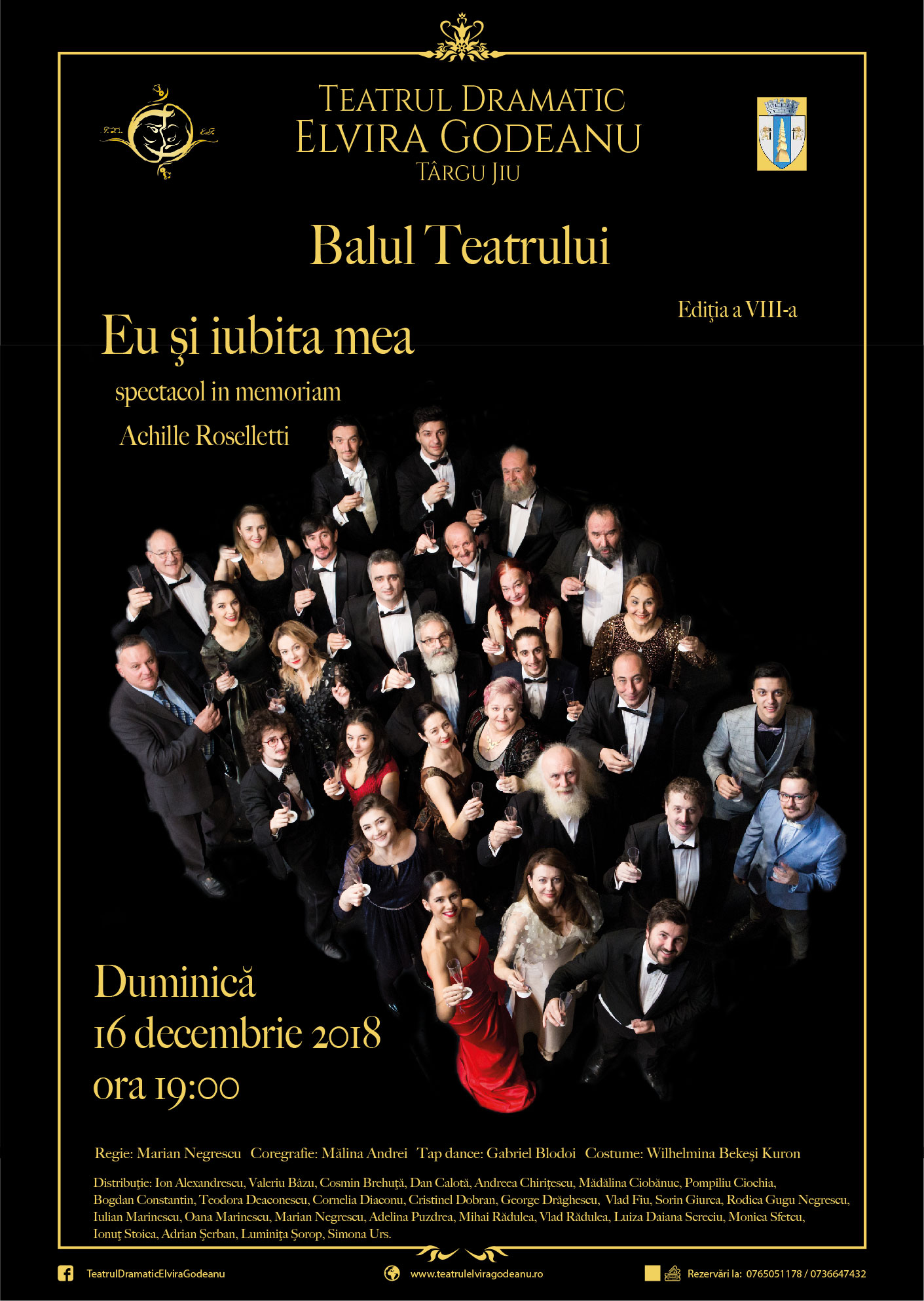 Cel mai aşteptat eveniment monden al anului, Balul Teatrului Dramatic “Elvira Godeanu” din Târgu-Jiu, va avea loc duminică, 16 decembrie, de la ora 19.00. Spectacolul se anunţă a fi unul remarcabil, cu momente de teatru de muzică şi dans. Cu această ocazie va avea loc premiera musical-ului ”Eu și iubita mea”, spectacol în regia lui Marian Negrescu, in memoriam Achille Roselletti.