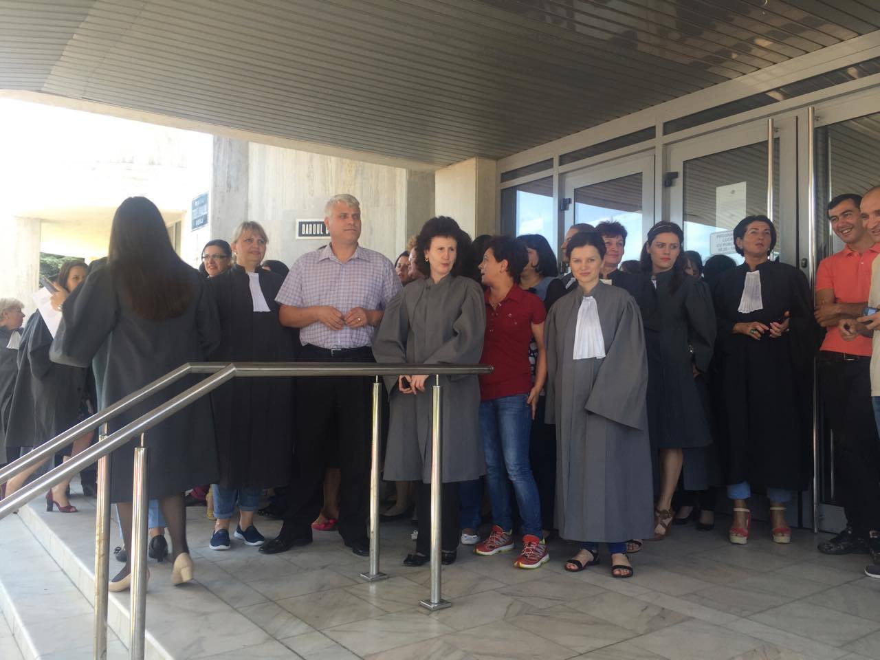 Peste 50 de grefieri de la Judecătoria Târgu-Jiu și Tribunalul Gorj au protestat astăzi, la ora 11.00, timp de o oră, nemulţumiţi de prevederile noii legi a salarizării. Ședinţele de judecată nu au fost însă suspendate. ”Au participat în jur de 50 de grefieri de ședință. Principala nemulțumire este referitoare la coeficienții de salarizare din noua lege de salarizare unitară. Noi am făcut acest protest, pentru a corela acești indici la o valoare reală, având în vedere incompatibilitățile grefierului de ședință, care sunt ca și ale judecătorului, nu mai are practic voie să presteze alte activități, în afară de cele din învățământul universitar. Nu au fost afectate ședințele de judecată, nu au fost afectate serviciile de relații cu publicul, arhivă, registratură, executări penale. A fost un protest spotant, în fața instituției, între orele 11.00-12.00”, a declarat pentru Gorjeanul, Ion Păun, grefier şef în cadrul Judecătoriei Târgu-Jiu.