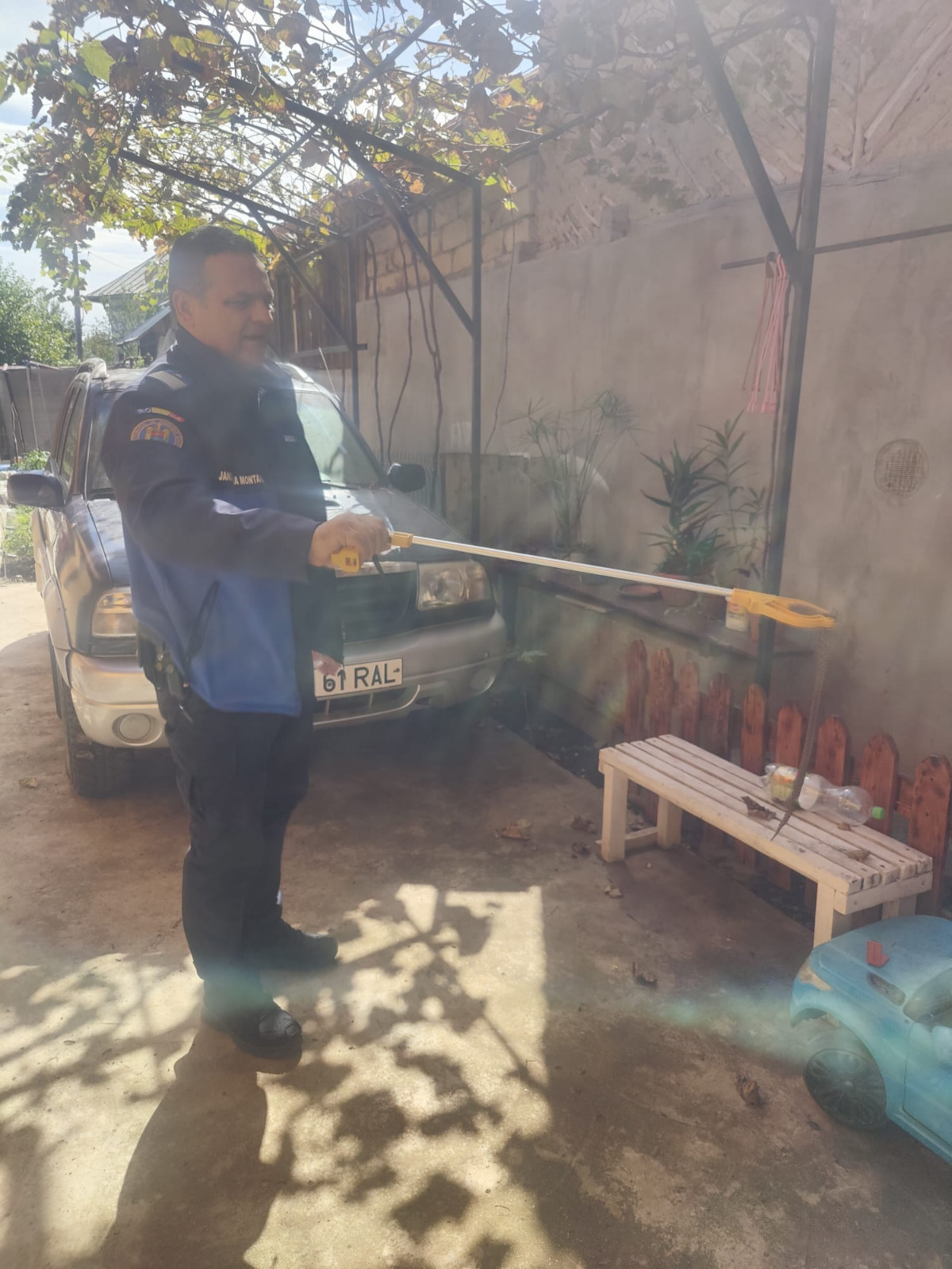 ”Șarpele a fost văzut de proprietara imobilului în apropierea locului de joacă al copiilor situat în curtea locuinței, iar în urma intervenției jandarmilor montani din Tismana, acesta a fost capturat cu un dispozitiv specific și ulterior eliberat în mediul natural, într-o zonă montană îndepărtată de locuințe.