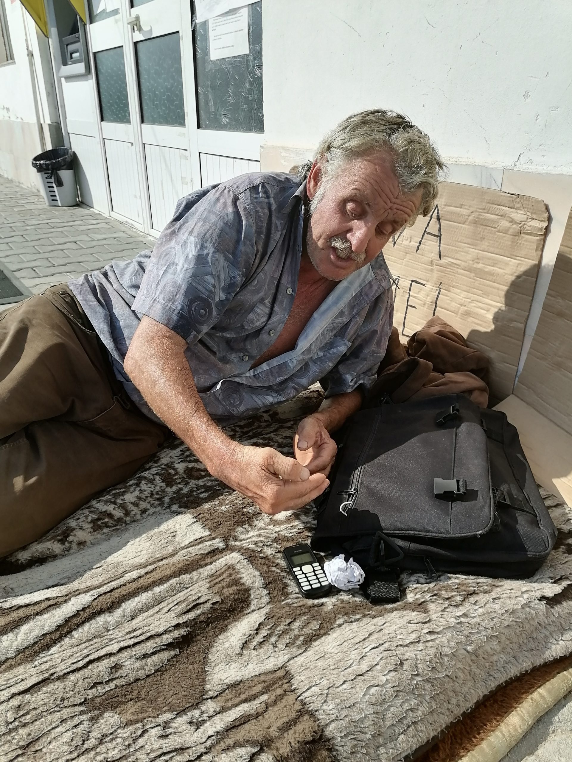 Cetățeanul este insulino-dependent și spune că nu știe cât mai rezistă în căldură, nefiind băgat în seamă de nimeni. Un echipaj de poliție din localitate îl supraveghează însă de la distanță.
