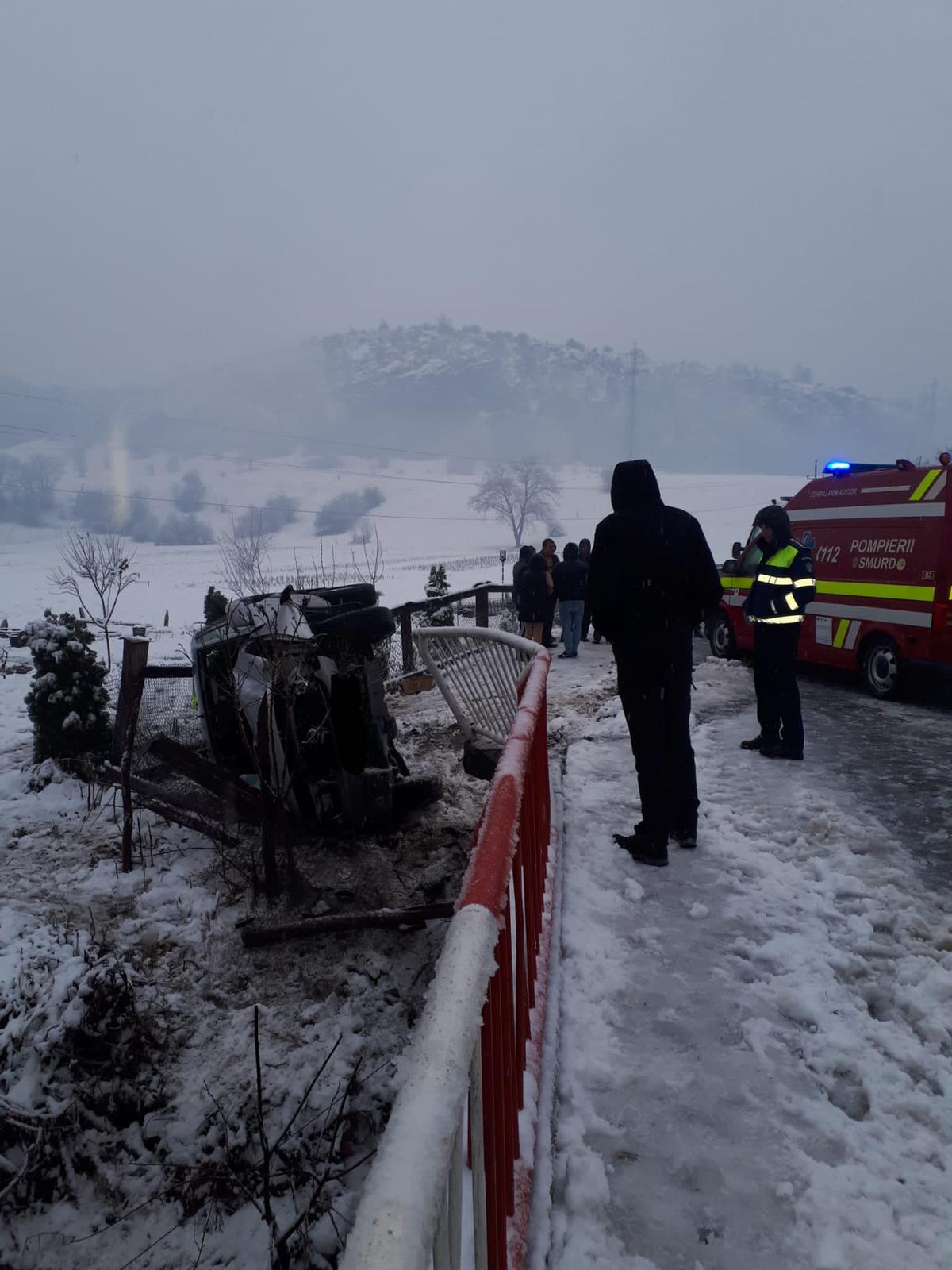 FOTO: Mașină răsturnată la Padeș, trei victime