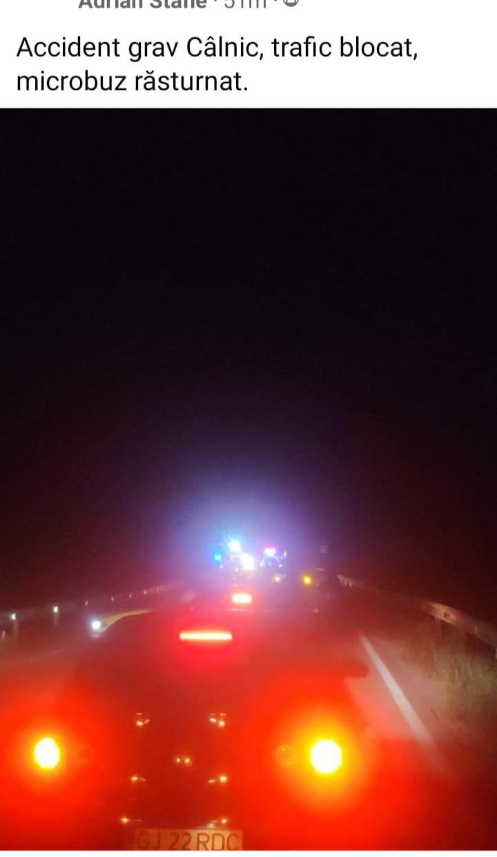 Un microbuz care transporta minerii de la Cariera Tirsmana 2 s-a răsturnatr la Câlnic. Pe  o pagină a evenimentelor rutiere, salariații CEO anunță că, din fericire, nimeni nu e rănit grav. ISU Gorj: ”Am fost solicitați sa intervenim pentru gestionarea unei situații de urgenta generata de un accident rutier produs intre un autoturism și un microbuz pe raza comunei Calnic. La fata locului s-au deplasat echipajele de pompieri din cadrul Detașamentului de Pompieri Tg Jiu cu doua autospeciale pentru descarcerare, doua ambulante SMURD, precum și doua ambulante din cadrul SAJ Gorj.