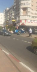 O șoferiță aflată la volanul unui BMW a acroșat un motociclist. Martorii spun că motociclistul, ridicat de un echipaj de la Ambulanță, avea picioarele rupte. Autoarea accidentului ar fi nevastă de polițist, mai spun martorii evenimentului rutier, cercetat în prezent de poliție.