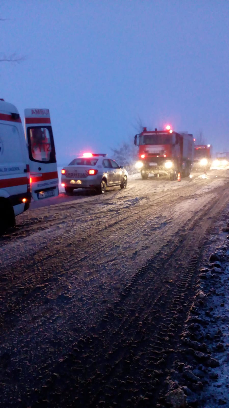 „Pentru gestionarea optimă a situațiilor de urgență, încă de ieri au fost mobilizate echipaje de pompierii salvatori care să intervină în sprijinul cetățenilor si autorităților locale din zonele vizate de ninsori. În urma manifestării fenomenelor meteorologice, pe timpul nopții au fost înregistrate efecte în șapte județe: Argeș, Dâmbovița, Hunedoara, Mehedinți, Prahova, Timișoara și Teleorman, fiind implicate 12 autovehicule și 24 persoane. În jurul orei 04.00, o ambulanță care se deplasa din județul Teleorman către un pacient care necesita dializă din comuna Seaca, județul Olt, pe Drumul Județean 679, între localitățile Mihăești și Seaca, a rămas blocată din cauza zăpezii viscolite pe carosabil. La fața locului s-au deplasat un utilaj al societății care se ocupă cu deszăpezirea drumului respectiv și un utilaj de la Serviciul Voluntar pentru Situații de Urgență Seaca. Ambulanța a fost deblocată rapid, iar ulterior a fost însoțită de un utilaj până la pacient. În această dimineață, autoritățile locale din județul Teleorman au intervenit pe DJ 703, între localitățile Ciolănești și Baldovinești, pentru deblocarea unei ambulanțe care se deplasa pentru preluarea unei gravide. Aceasta nu a mai putut înainta din cauza zăpezii de pe carosabil, însă a fost deblocată rapid de utilaje„, anunță IGSU.