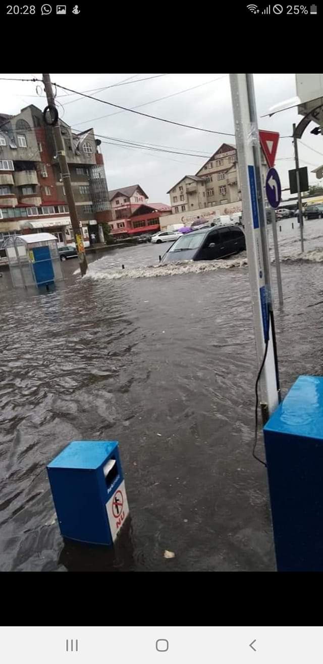 Foto: Noile parcometre din Piața Centrală, sub ape! Și mașinile…