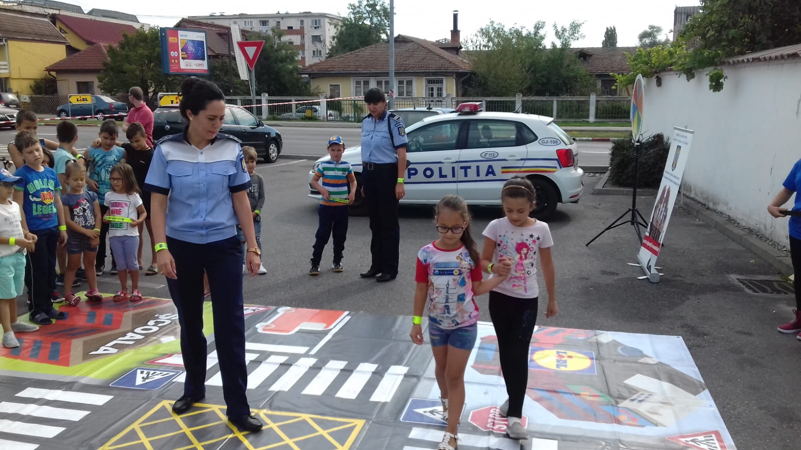 Polițiștii din cadrul Serviciului Rutier și Biroului de Prevenire au organizat, astăzi, o acțiune în parcarea unor supermarketuri din Târgu-Jiu, la care au participat 190 de copii cu vârste cuprinse între patru și 11 ani. „Micuții au ascultat cu interes lecțiile prezentate de polițiști și au participat la probele practice, pentru ca ulterior sa știe să circule în condiții de siguranță pe drumurile publice în calitate de pietoni. La final, câștigătorii concursurilor organizate au fost premiați de reprezentanții supermarketului și de polițiști, cu diferite premii”, a declarat Andrei Lazăr, purtătorul de cuvânt al IPJ Gorj.