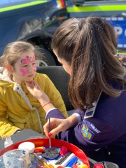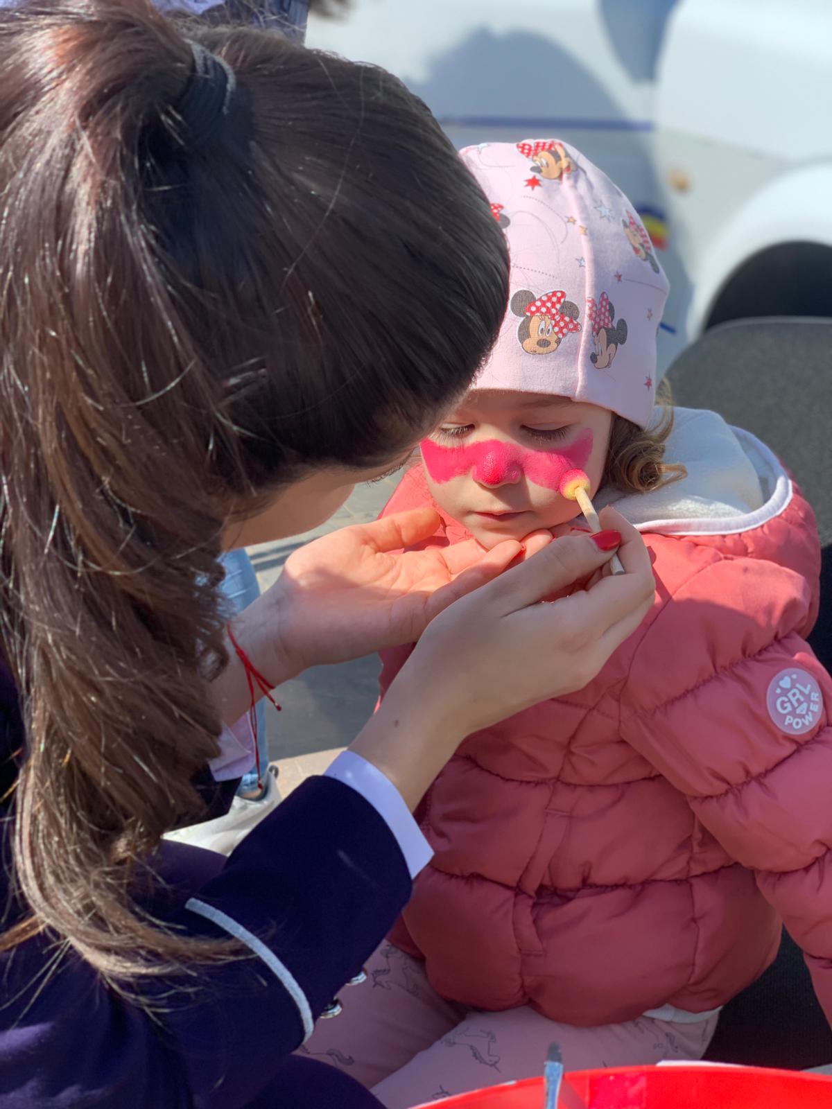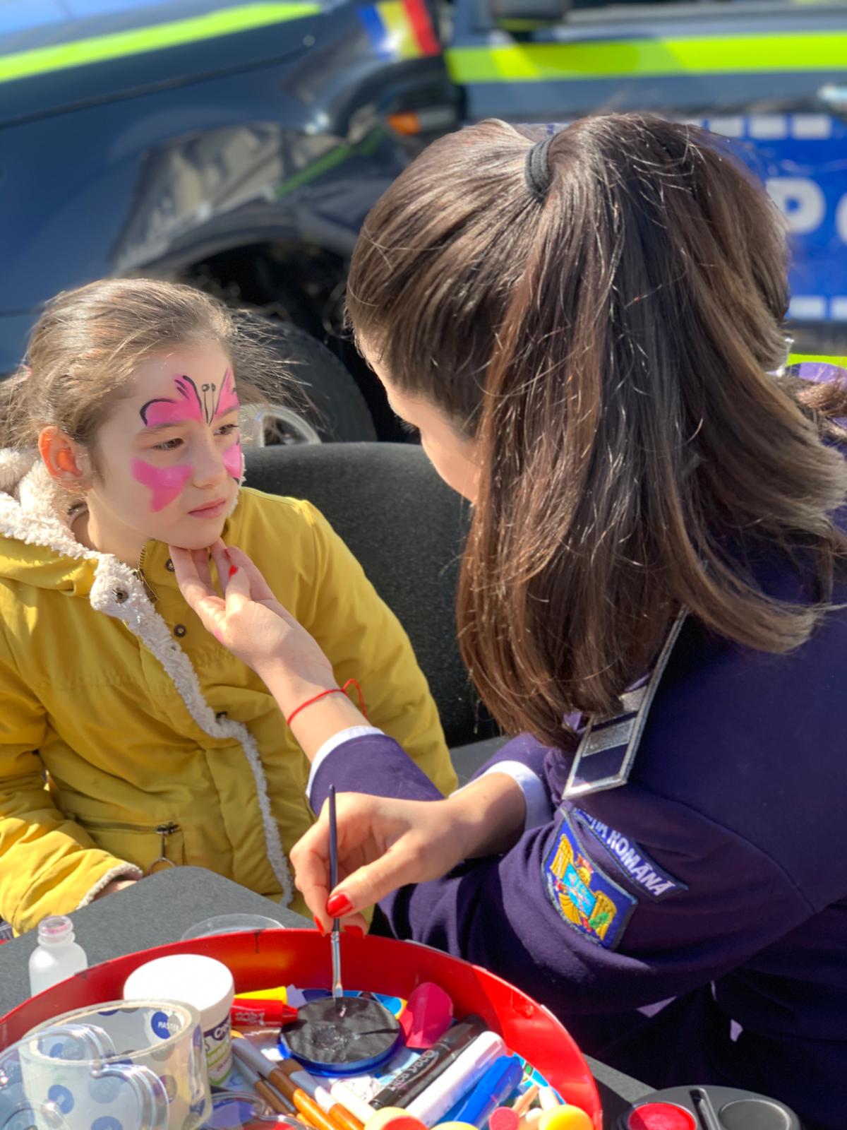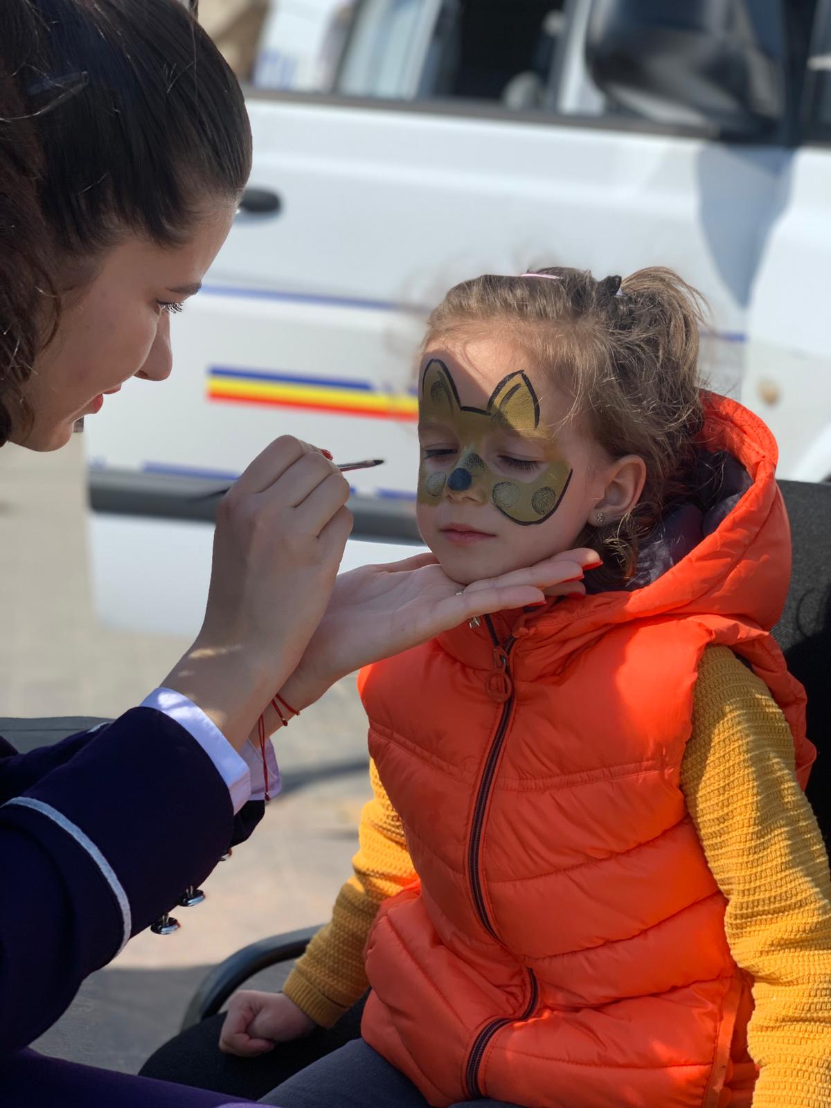 Deși, în fiecare an, atracțiile principale au fost ”câinii polițiști”, anul acesta micuții s-au bucurat de atelierul de pictură pe față, organizat în Piața Prefecturii, astfel că s-au putut transforma, cu sprijinul polițiștilor, în personajul lor de poveste.
