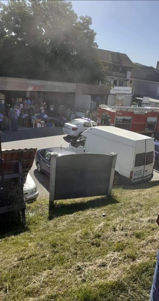 FOTO – Pompierii intervin: autoturism incendiat în zona Pieței Mari