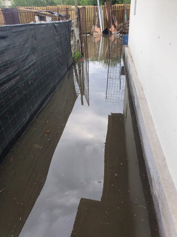 Apa s-a scurs spre locuințele care sunt în pantă, direct din strada care este și ea afectată de precipitațiile în debit mare. De altfel, aversele astfel acumulate nu au avut unde să se scurgă, canalizarea fiind inexistentă în zona.