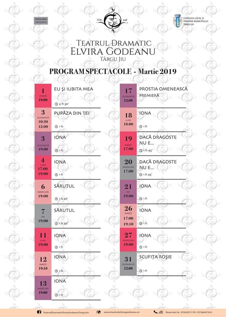 Foto: Programul spectacolelor Teatrului „Elvira Godeanu” din luna martie