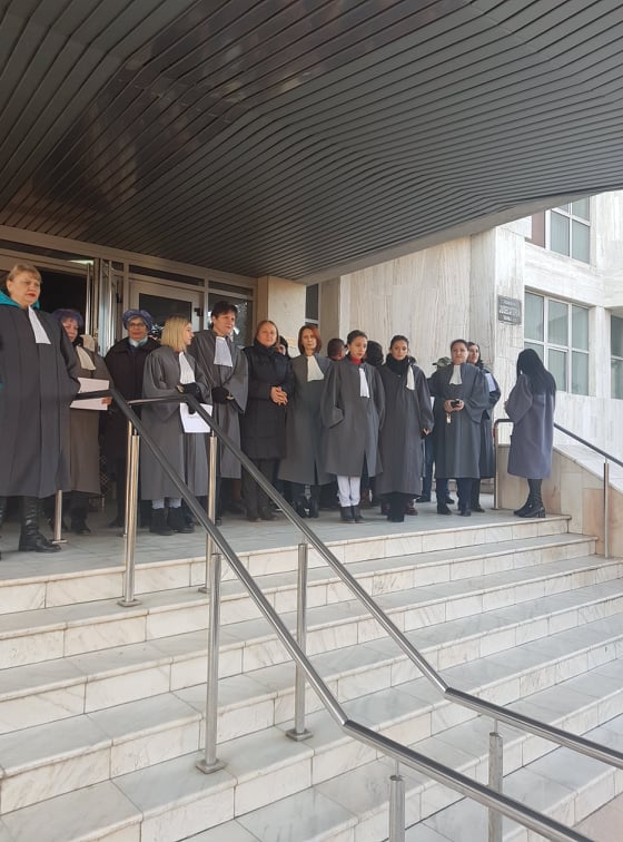 Aproximativ 100 de grefieri de la Tribunalul Gorj, Judecătoria Târgu-Jiu, Parchetele din județ și DIICOT, au oprit activitatea, astăzi, la ora 10.00 şi au ieşit la protest pe scările Palatului de Justiţie din Târgu-Jiu. Aceştia sunt nemulţumiţi de intenţia Parlamentului de a elimina pensiile de serviciu. ”Protestăm astăzi împotriva proiectului de lege pentru eliminarea pensiilor de serviciu sau pensiilor speciale, cum le-au catalogat dumnealor, domnii deputați, deocamdată e la Camera Deputaților, for legislativ decizional. Pensia noastră nu este o pensie specială.  Este o pensie ocupațională sau de serviciu. Prin statutul pe care îl avem, respectiv legea 567, noi avem anumite incompatibilități și interdicții, aceleași ca și magistrații, prevăzute prin legea dumnealor, legea 302. De asemenea, nu putem desfășura, pe perioada cât avem aceste incompatibilități și interdicții alte funcții. Dacă dumnealor consideră că noi nu mai trebuie să beneficiem de această pensie,  ocupațională sau de serviciu, ar trebui să procedeze la înlăturarea interdicțiilor și incompatibilitățilorprevăzute de legea 567, statutul personalului auxiliar, ca să putem face și noi altceva, să ne putem rotunji și noi veniturile”, a declarat Petre Bivolariu, grefier în cadrul Tribunalului Gorj.