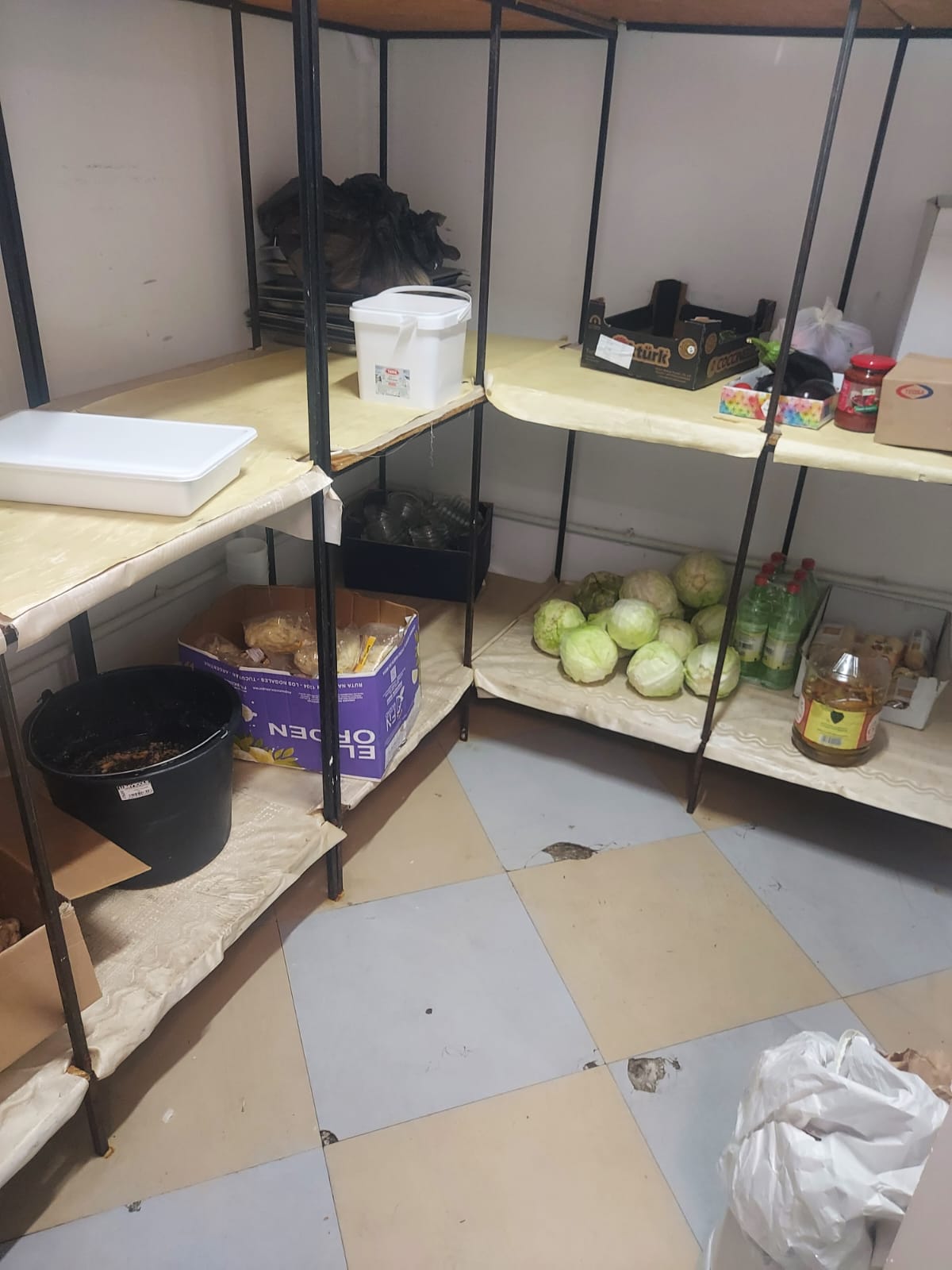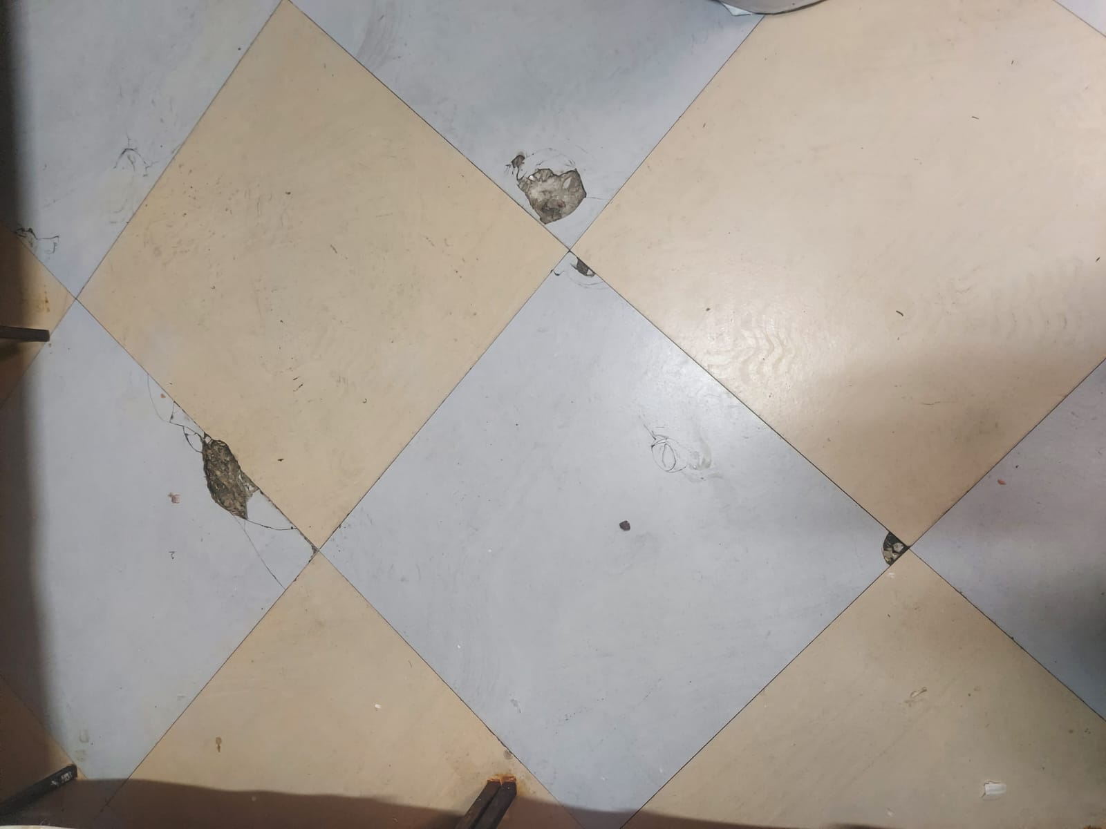 – Pavimentul din blocul alimentar era parțial deteriorat, cu zone lipsă sau elemente din ceramică spartă