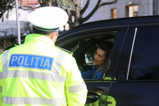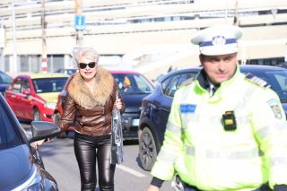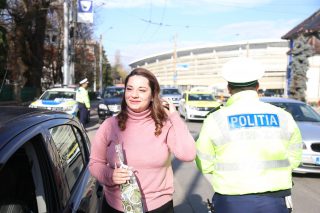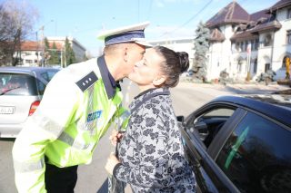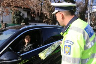 Șoferițele au fost oprite în trafic astăzi, 8 Martie, la Târgu Jiu. Nu pentru a fi sancționate, ci pentru a primi flori din partea polițiștilor de la Rutieră.