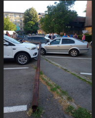 Doi stâlpi de iluminat stradal din zona 23 August, Târgu Jiu, au căzut pe mașinile oamenilor. Revenim cu informații.