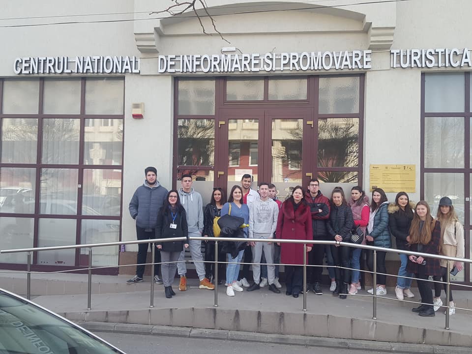 În cursul zilei de ieri, CNIPT „Constantin Brâncuși” Târgu Jiu a primit vizita unor elevi, aflați în practică, în clasa a XII a – Profil Tehnician în Turism, fiind însoțiți de prof. Manuela Ungureanu, de la Colegiul Economic „Virgil Madgearu” din Târgu Jiu. Ghidul Aniela Eliza Ștefan, le-a prezentat, în teren, modul cum se realizează un circuit turistic cu cele mai importante obiective turistice ale orașului: Piața Prefecturii – Podul Jiului – Masa Tăcerii – Aleea Scaunelor – Poarta Sărutului, continuând pe Calea Eroilor la Biserica „Sfinții Apostoli Petru și Pavel”, și până la Coloana Recunoștinței fără Sfârșit. Pe traseul turistic au mai fost prezentate date despre clădirea Primăriei Târgu Jiu, Stadionul Municipal, Teatrul Dramatic „Elvira Godeanu”, Biblioteca Județeană „Christian Tell”, Muzeul Județean „Alexandru Ștefulescu”, precum și despre înființarea Colegiului Național „Tudor Vladimirescu”. Elevilor le-au fost înmânate materiale de informare și promovare turistică și s-au semnat în registrul de turiști. Vizita s-a dorit a fi o „altfel de lecție” în domeniul turismului.