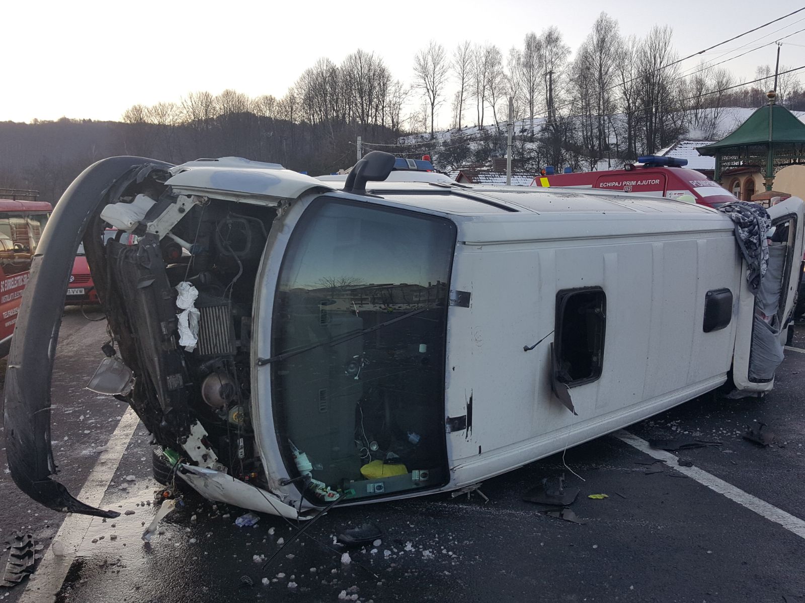 Accidentul a avut loc în această dimineață, în comuna Bănița. „În jurul orei 07.45, un bărbat care conducea un microbuz, pe DN66, din direcţia Haţeg – Petroşani, pe fondul neadaptării vitezei la condiţiile de drum, a derapat şi a ieşit în afara părţii carosabile, lovind gardul Primăriei Comunei Băniţa.