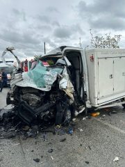 De asemenea, polițiștii comunică faptul că accidentul s-a produs între două autoutilitare și că traficul este blocat.