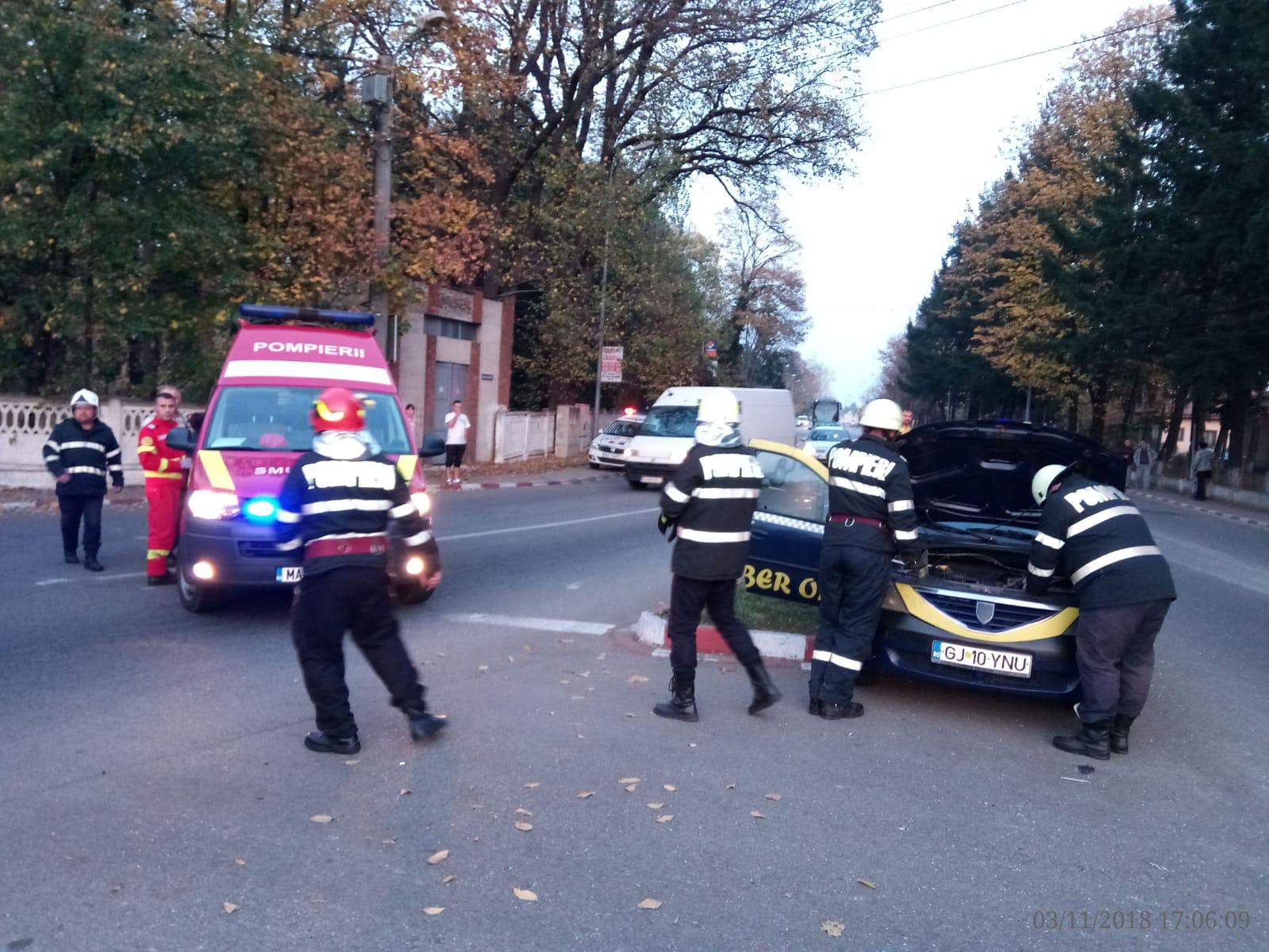 „ISU Gorj a fost solicitat să intervină pentru gestionarea unei situații de urgență generată de un accident rutier produs pe strada Calea București din municipiul Târgu-Jiu, în care au fost implicate două autovehicule. La fața locului s-au deplasat un echipaj pentru descarcerare și un echipaj SMURD din cadrul Detașamentului de Pompieri Târgu-Jiu, precum și un echipaj din cadrul SAJ Gorj, care au constatat că, în urma impactului, o persoană de sex masculin rămăsese blocată într-unul dintre autovehicule. Aceasta era conștientă, a fost scoasă de pompierii militari, fiind ulterior transportată la Unitatea de Primiri Urgențe a spitalului din Târgu-Jiu”, a declarat Florin Chisim, purtătorul de cuvânt al ISU Gorj. Polițiștii efectuează cercetări în acest caz, pentru a stabili cu exactitate împrejurările în care a avut loc evenimentul. „Un bărbat de 45 de ani, în timp ce conducea un autoturism în regim taxi, dinspre strada Unirii, nu a acordat prioritate de trecere unui autoturism care circula regulamentar în direcția Târgu-Jiu – Vâlcea, în giratoriu. În urma impactului, șoferul taxi și fiul său de 17 ani au suferit leziuni. Șoferul celuilalt autoturism a fost testat cu etilotestul, rezultând 0,25 mg/l în etilotest. În cauză s-a întocmit dosar penal pentru vătămare corporală din culpă”, a precizat Miruna Prejbeanu, purtătorul de cuvânt al IPJ Gorj.