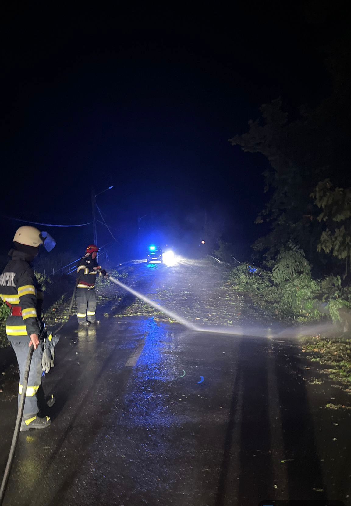 Urmare a manifestării fenomenelor meteo, instituția noastră a fost solicitată să intervină pentru gestionarea a 19 situații de urgență generate de copaci căzuți pe carosabil în localitățile Cîlnic, Ciuperceni, Mătăsari, Fărcășești, Glogova, Padeș, Rovinari, Bîlteni, Licurici, Hurezani, Motru și Polovragi, precum și 2 situații de urgență generate de copaci căzuți care au afectat locuințe în localitățile Țicleni și Fărcășești, arată ISU Gorj.