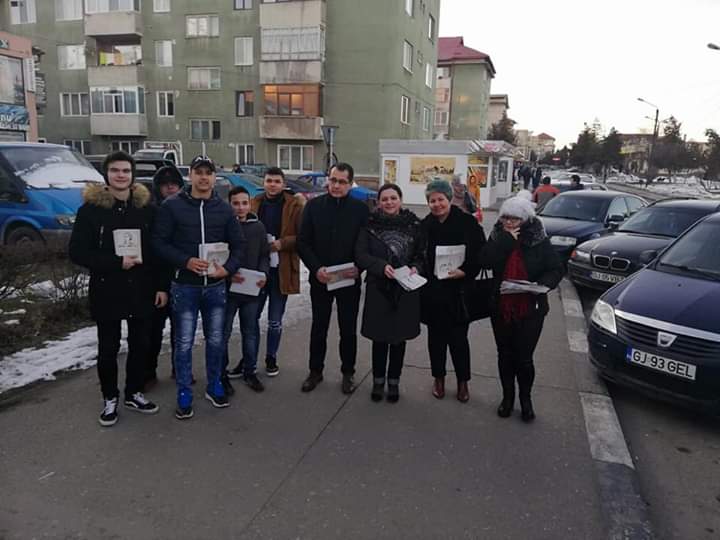 În Târgu Jiu, tinerii liberali au fost cei care au împărțit materialele menite să amintească de „poetul nepereche”.