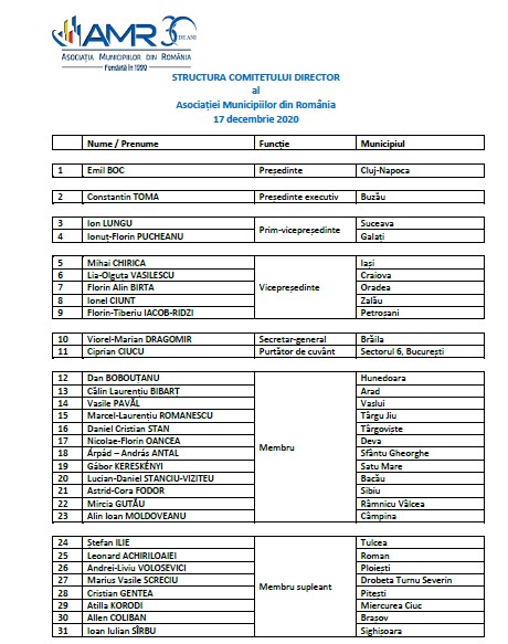 Edilul municipiului Târgu Jiu, Marcel Romanescu, face parte din noua structură a Comitetului Director din cadrul Asociației Municipiilor din România. Noua structură a fost aleasă ieri și este compusă din 23 de membri. În funcția de președinte al AMR a fost ales Emil Boc, primarul municipiului Cluj-Napoca.