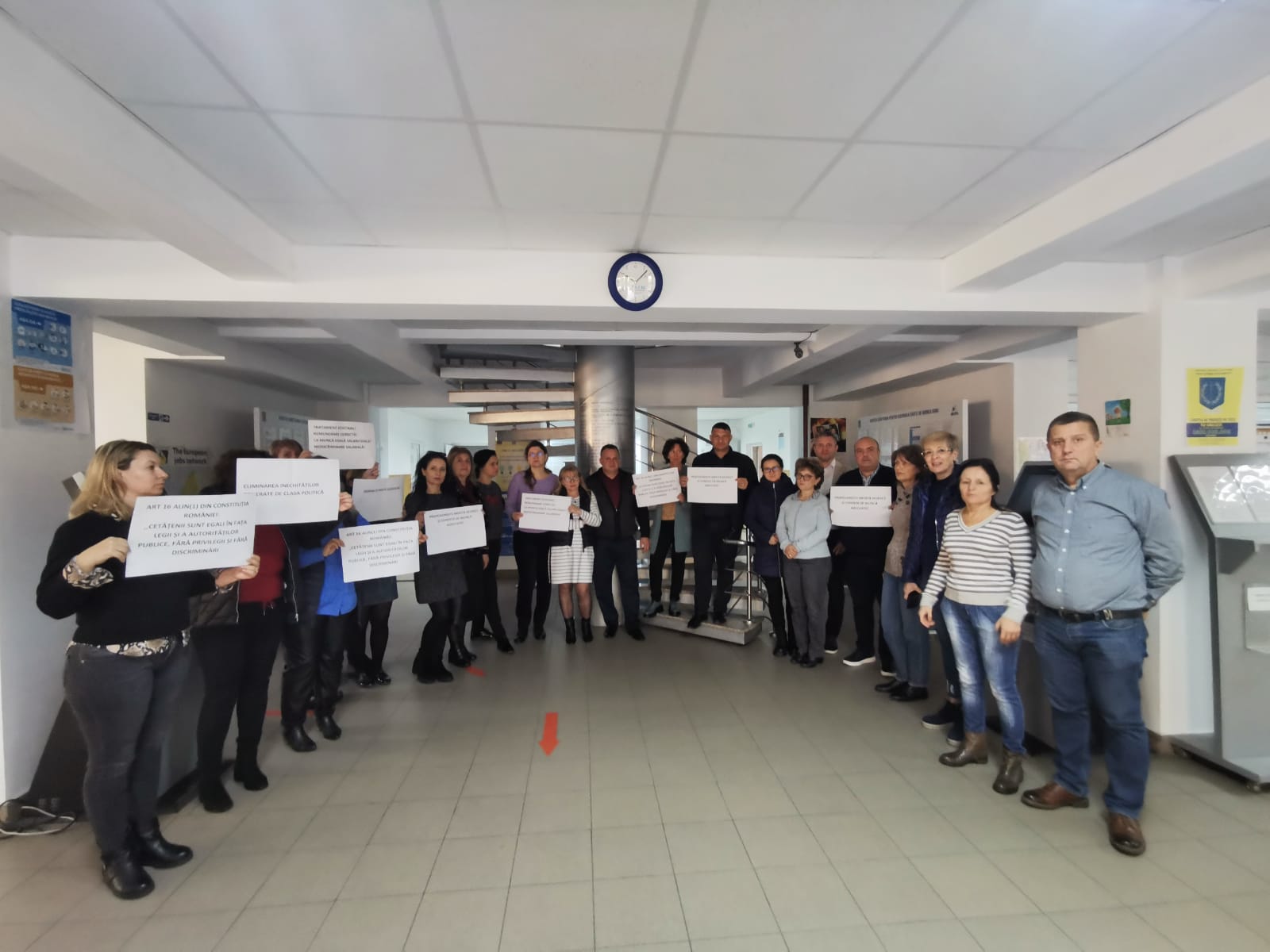 Funcționarii publici din cadrul AJOFM Gorj au protestat și astăzi, timp de o oră oprind activitatea, de la 10:00 și până la 11:00.