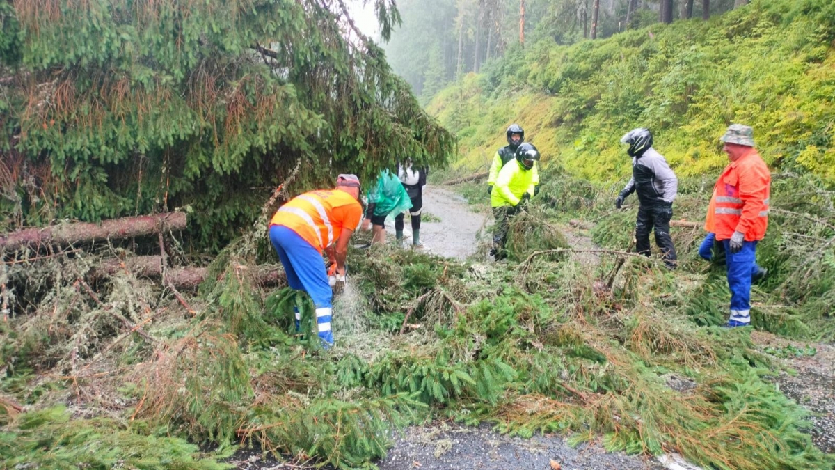 Tronsonul din DN 67C cuprins între cabana Oaşa şi Obârşia Lotrului este blocat, pe ambele sensuri de mers, luni după amiază, în urma unor fenomene meteo extreme.