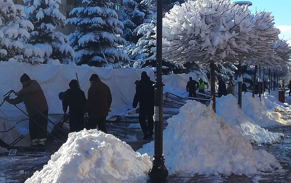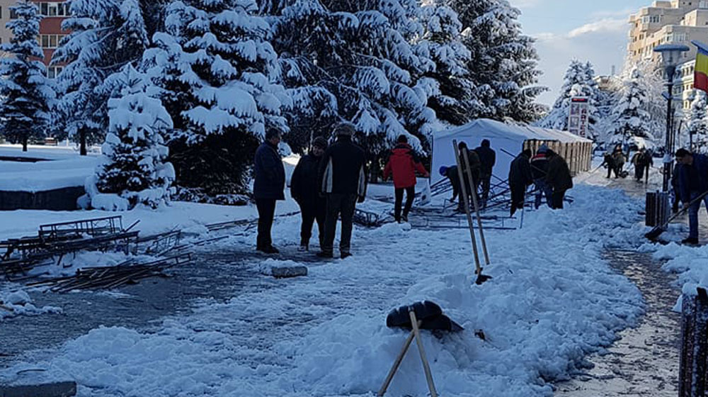 Corturile montate de Primăria Târgu Jiu în centrul municipiului pentru Târgul de Mărțișor au fost spulberate, noaptea trecută, de viscolul puternic. În această dimineață, angajații municipalității începuseră să le remonteze. De altfel, vineri, 22 februarie, a avut loc tragerea la sorți pentru repartizarea locurilor comercianților.