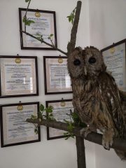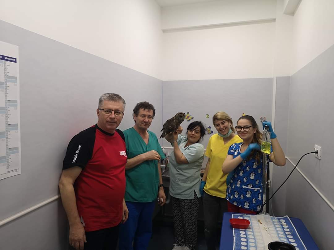„Salvamont si altfel, dar tot salvatori… In urma cu circa doua luni, la sediul Salvamont Gorj din Targu Jiu, o persoană a adus un pui de bufnita cu o aripa rupta gasita langa o padure de la marginea orasului. Micuța pasare a fost cuminte și sociabilă de la inceput, a baut apa, a mancat si a fost adoptata imediat si cu mare drag de catre salvamontistii gorjeni. In ziua urmatoare bufnitei i-a fost facut un consult de specialitate la clinica Clinivet din Targu Jiu, condusa dl dr. Vasile Popescu, cel care are sub observatie si cainii de salvare ai Salvamont Gorj, si a fost operata imediat. Acum aripa, desi mai scurta cu cca 2 cm, este vindecata, iar bufnita a revenit la sediul Salvamont Gorj unde i-a fost pus la dispozitie un spatiu generos, in garajul insitutiei, în care sa isi recapete fortele si aptitudinile de zbor. Bufnița a ales și un loc unde sa stea, in structura panoului de cățărare, de unde coboara să manance si să cerceteze sediul. Salvamontistii gorjeni spera ca bufnita sa isi recapete toate aptitudinile de zbor, o vor pregati sa prinda hrana vie si isi doresc sa ii redea libertatea cat mai repede. Multumim dl. dr. Popescu Vasile si intregii sale echipe din cadrul Clinivet pentru daruirea de care au dat dovada in acest caz si pentru tot sprijinul deosebit pe care il acorda activitatii de salvare montana”, a transmis conducerea Salvamont Gorj.