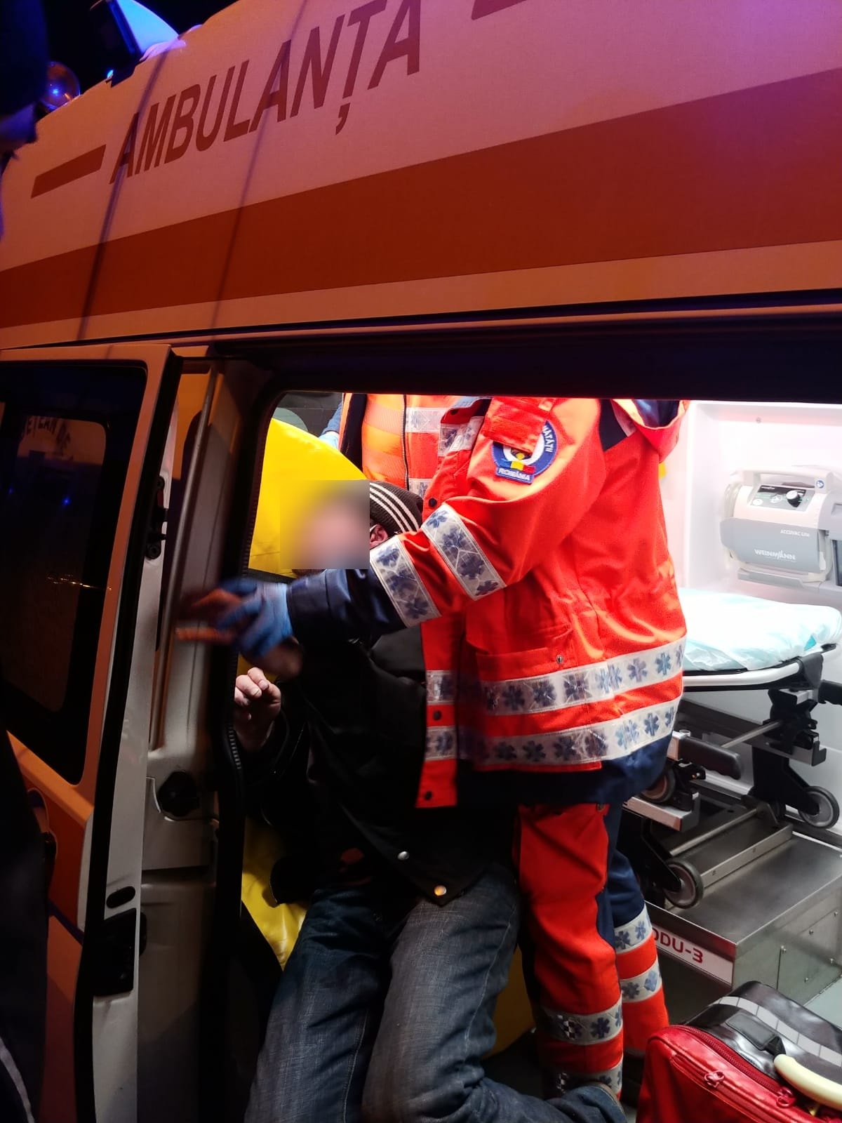 Bărbatul a fost preluat de ambulanță și dus la spital, în vederea acordării de îngrijiri medicale.