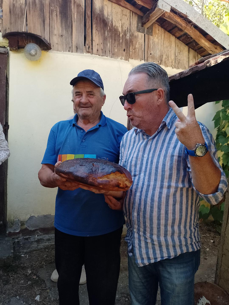 Am apucat câțiva, cu oarece noroc, să fim oaspeții unui vecin galanton și să ne dezlipim ca lumea cu pâine caldă făcută-n țăst de pământ, cu brâză proaspătă și cu praz oltenesc, îndemnați hotărât de gazdă și cu câte un ciocănel de țuică de-a nouă, din corcodușe numai de-ale galben-aromate. Ne-a fost îndeajuns ca să petrecem cu alți ochi în coloana de mașini drumul peste încă vreo trei rânduri de dealuri la fel de frumoase, dar sărace rău prin grija de azi a omului nou, puțin la număr și tot mai slab în puteri.