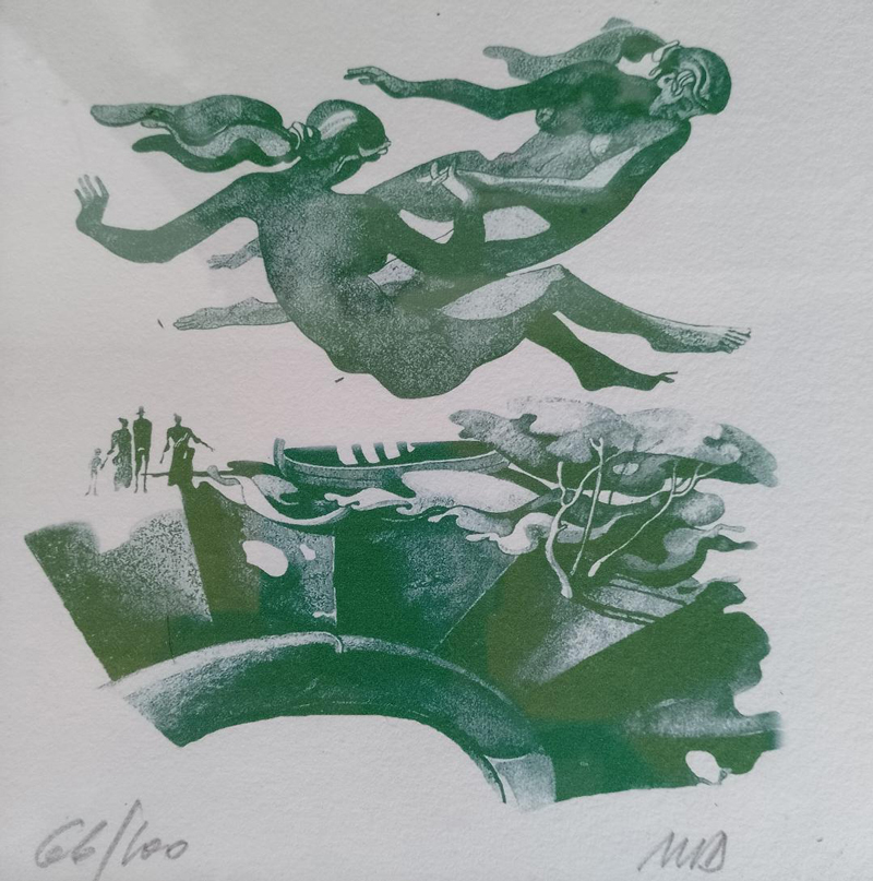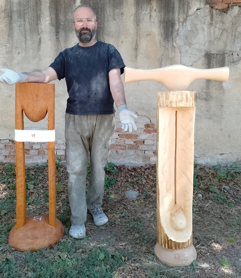 Primul, cu voia dumneavoastră, e George Apostu – poate cel mai mare sculptor român după Brâncuși. De la el avem un desen făcut nouă cadou la zi mare de regretatul Ion Pogorilovschi – întâiul comentator avizat al Capodoperei de la Târgu Jiu –, care îl primise și el cadou de ziua-I de la sora lui, Stela Covaci, unde – în casele Covaci de pe str. Grigore Alexandrescu din București – se întâmplau în epocă agape de pomină la care participa și… George Apostu. Tot de la George Apostu deținem una din puținele-i „Lapone” în lemn – toată lumea le știe pe cele de la Măgura, din ediția a VI-a, 1975, din piatră –, a noastră provenind din colecția unui mare cărturar, bun prieten cu „Bețiguș” pe care-l vizita des în grădina cu statui de la Băneasa și care „s-a achitat” de noi, apreciind entuziasmul nostru „fără perdea” într-ale… artei.