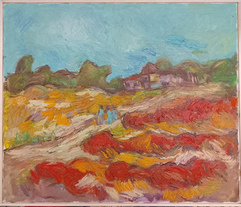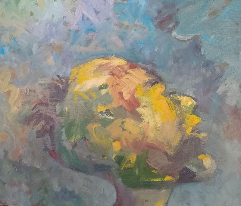 Există în oraș la noi o doamnă distinsă, soție de scriitor, absolventă în adolescență a unui liceu de arte din Ardeal, apoi… economistă în județul Gorj. A cochetat din totdeauna cu pictura și noi avem câteva lucrări de la Marina Antonie, căci despre ea este vorba, un tablou chiar de tinerețe ne place mult și pentru el am avut totdeauna un loc privilegiat pe unul dintre pereții noștri „cei mai albi”. Cred că prin 2006 „am alcătuit” o expoziție care s-a chemat „Galben de Inoasa” și era dedicată atunci bucuriei de-a fi rodit cu rod bogat singurul gutui din fața casei de la Bălănești. Din expoziția de-atunci de la Galeriile de Artă din str. Traian ne-au rămas câteva lucrări „cu temă” de la Paul Popescu, Valer Neag, Florin Isuf, Vasile Fuiorea, Marina Antonie, Mihai Țopescu, Marius Turcitu, Costel Dobrițescu, pe unele avându-le pe simeze și astăzi în expoziția de la Muzeu. Tot de atunci „provine” și un tablou de la Radu Alexandru, ardelean, discipol al lui Aurel Nedel, scenarist în mai multe rânduri la Teatrul Elvira Godeanu, un bun prieten de la care mai avem în inventat câțiva „arlechini”, desenați special pentru o expoziție ce-a avut loc în foaierul teatrului cu ocazia unei premiere. Atunci se putea!…