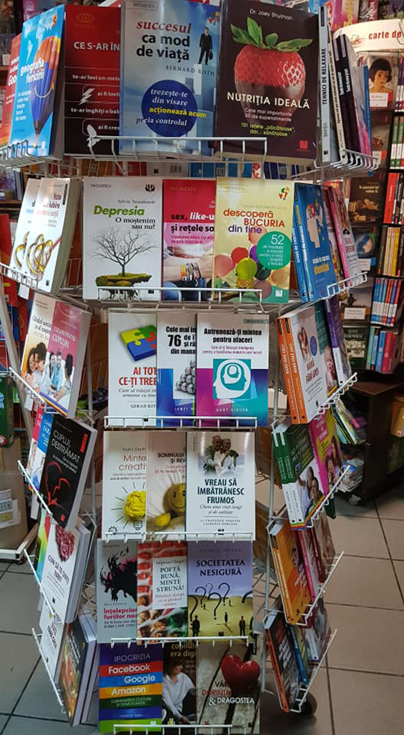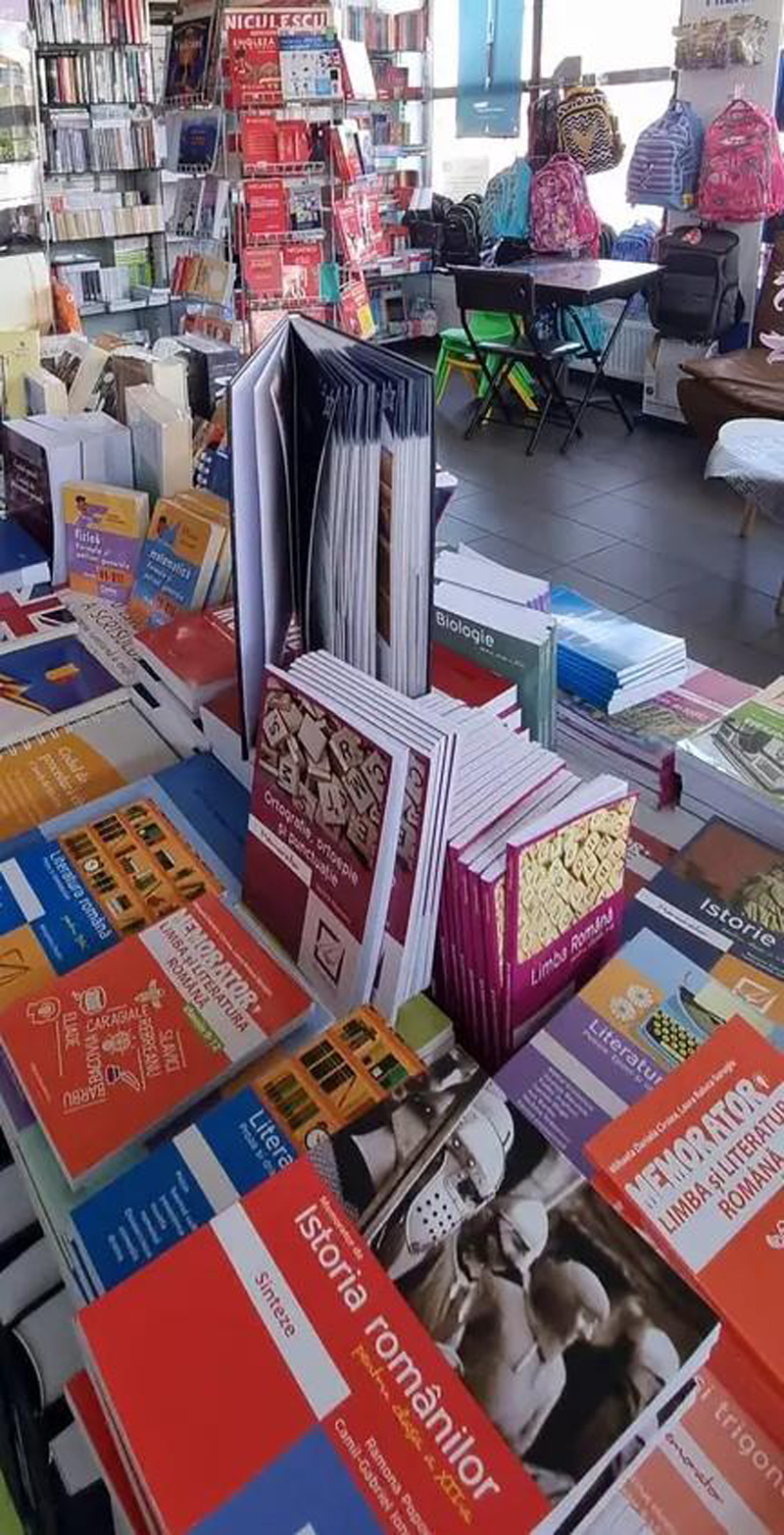 Am intrat și-am fost luat în primire din prima, elegant, cu politețe ușor exagerară și cu vădit interes pentru clientul ce păream a fi. Aveam să descopăr un parter plin cu produse de papetărie și un etaj generos burdușit cu rafturi pe care stau aliniate la vedere cărți de tot felul și de la toate editurile. Am stat de vorbă cu Dna. Carmen – managerul unității: