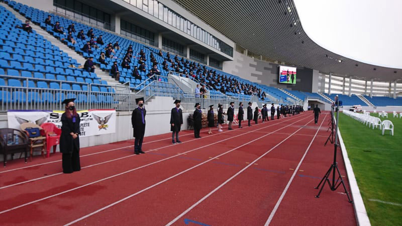 Iunie, 2020, Stadionul Municipal Tudor Vladimirescu din Târgu-Jiu… Tineri emoționați, părinți cu lacrimi în ochi, bunici care își trăiesc cel mai frumos vis, profesori care sărbătoresc o nouă generație de absolvenți. De data aceasta, Liceul, care le-a fost casă multora dintre ei chiar 12 ani, a rămas tăcut, în timp ce Gaudeamus igitur răsună în orașul de pe Jiu. Nu întâmplător, Stadionul, devenit sală de festivități, poartă același nume ca școala acestei generații, căci tinerii emoționați sunt promoția 2020 a Colegiului Național „Tudor Vladimirescu”.