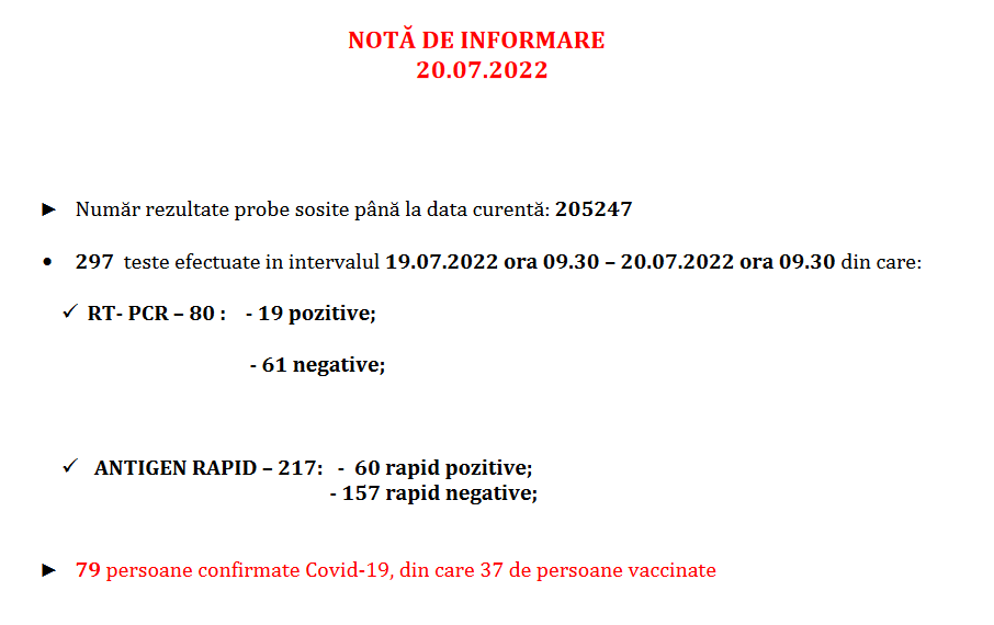 Direcția de Sănătate Publică Gorj a raportat, miercuri, 79 de noi cazuri de Covid, 37 la persoane vaccinate.