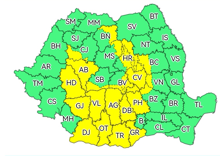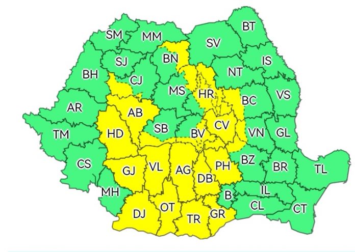 În sudul și estul Transilvaniei, în cea mai mare parte a Olteniei, în vestul și nordul Munteniei, precum și în zonele de munte vor fi perioade cu instabilitate atmosferică, ce se va manifesta prin intensificări ale vântului (rafale de 55…70 km/h), vijelii, descărcări electrice, averse torențiale și izolat grindină. În intervale scurte de timp sau prin acumulare, cantitățile de apă vor fi de 20…25 l/mp și izolat de peste 30…40 l/mp.