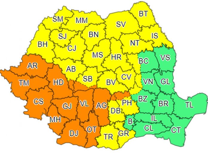 Potrivit ANM, în intervalul 5 iulie, ora 14:00 – 6 iulie, ora 10:00, va fi Cod portocaliu de instabilitate atmosferică accentuată, ploi însemnate şi vijelii local în Oltenia, în nordul Munteniei şi în Carpaţii Meridionali, apoi şi în Banat, sudul Crişanei şi sud-vestul Transilvaniei.