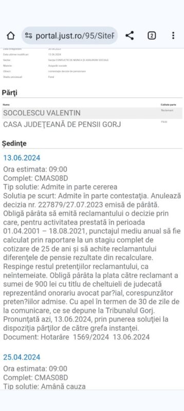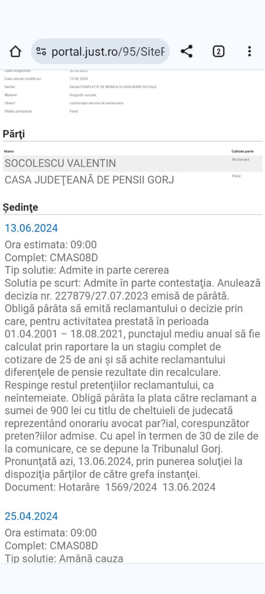 Un salariat al CE Oltenia care ieșise la pensie, iar apoi Casa de Pensii s-a sucit, anunlându-i decizia, a primit câștig de cauză, azi. ”INSTANTA DE LA GORJ a făcut dreptate pentru un coleg, pentru care Casa de Pensii i-a emis o decizie de pensionare favorabilă ( l-a scos la pensie ), iar după nouă luni i-a anulat decizia de pensionare, lăsându-l fără niciun venit, fiind nevoit să dea înapoi și banii pe care i-a încasat cu titlu de pensie! Grație domnului avocat TOARTA IONUT MIHAI.