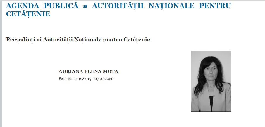 Gorjeanca Adriana Elena Moța a fost îndepărtată de la șefia Autorității Naționale pentru Cetățenie. Fostul președinte al instituției, fiul jurnalistului Dumitru Tinu, a câștigat în instanță revenirea pe post.